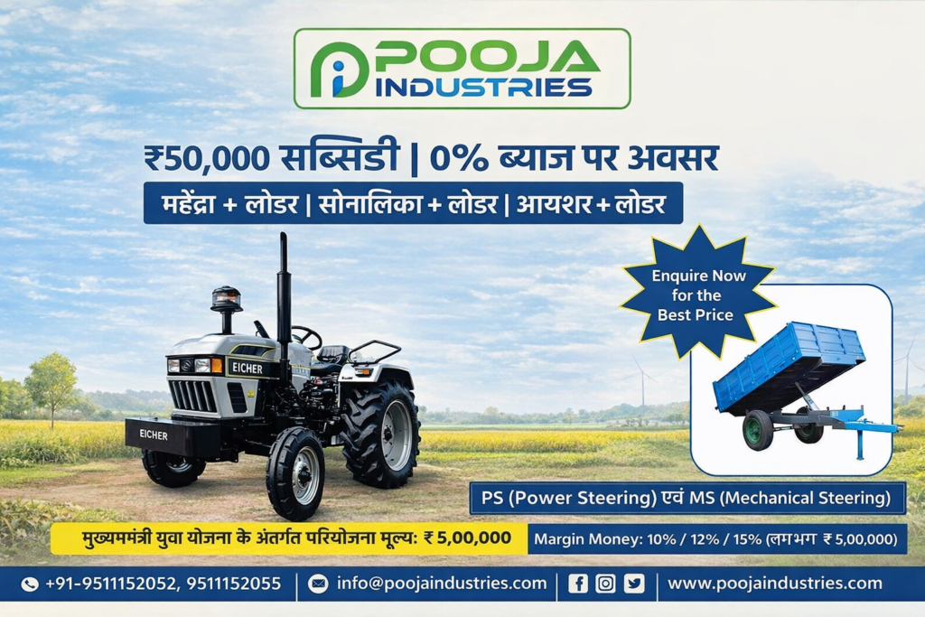 Welcome to Pooja Industries located in Uttar Pradesh. We are known for helping our local farmers. We also help young people start their own work. Our website is poojaindustriesup.com. Please visit us there and check out our products. We make very strong and high-quality machines for you.